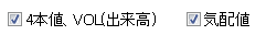 画面左下のチェックボックスにチェックをすることで、約定値や気配値の更新時に背景色を反転させることができます。