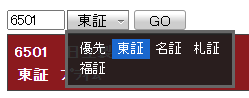 - 銘柄コードの右側にあるメニューから市場を選択してください。